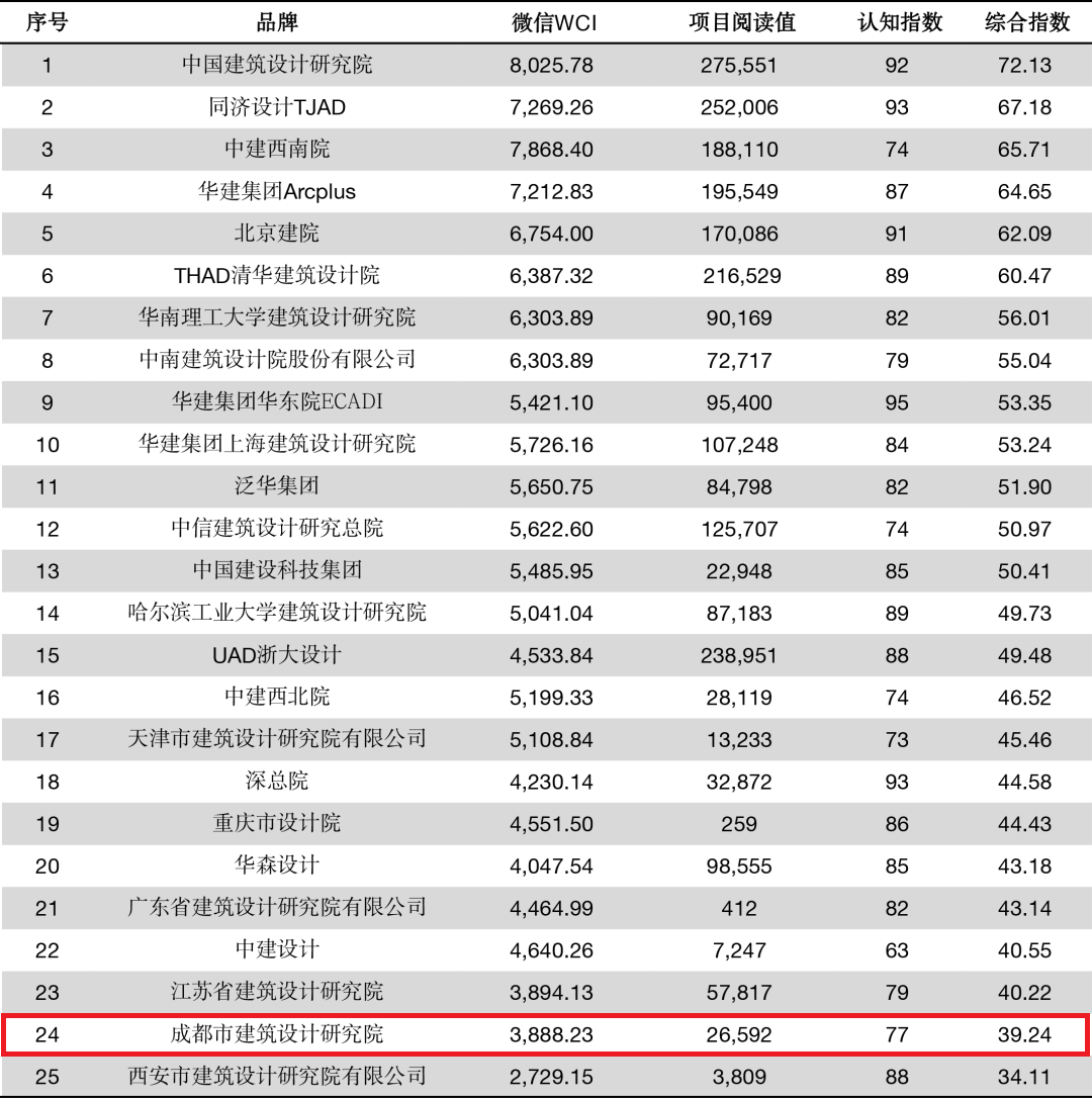 评选结果表明市建筑院在品牌活跃度、关注度和认可度方面取得了一定的成绩,在业内外影响力进一步提高。未来,市建筑院将继续勇担“为公园城市而生”的历史使命,以新发展理念引领品牌升级,为成都公园城市示范区建设贡献力量!